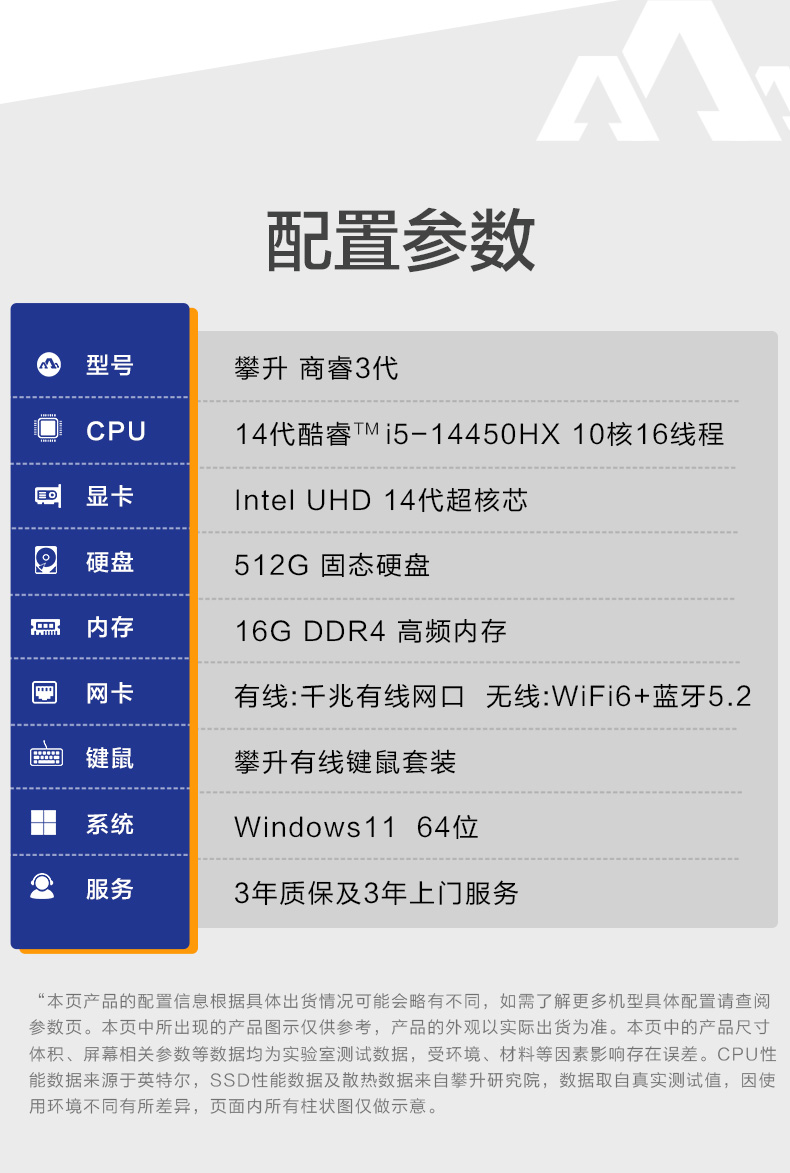 颜色 黑色 处理器 14代酷睿i5 14450HX 芯片组 14450HX 显卡 Intel超核心显卡 内存 DDR4 16G 硬盘 512G SSD 电源 230W 外观尺寸 298*145*350(L*W*H) -
